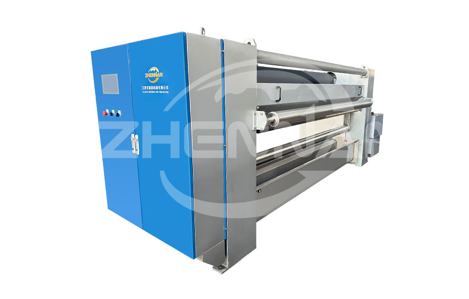 1、本機采用三點油壓,比原有氣壓均勻軋車,壓力增大,使織物經(jīng)過軋車后,有相對極低的軋余率。