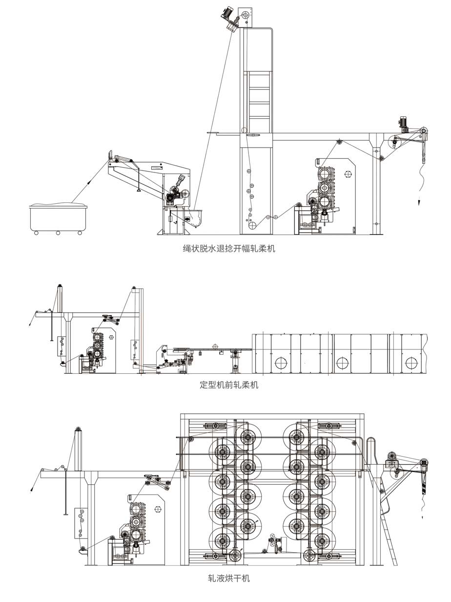 本產(chǎn)品可作為聯(lián)合機(jī)單元,主要用于純棉,化纖及混紡織物的浸軋助劑、軋水等工藝,并使其能達(dá)到30%~40%的軋余率,縮短后續(xù)的烘干定型時(shí)間,降低蒸汽和天然氣的能耗,節(jié)約生產(chǎn)成本,提高了生產(chǎn)效率。